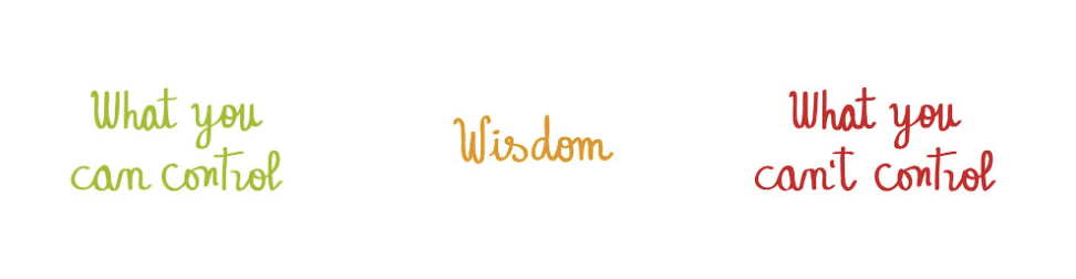 It is possible to summarize the strategy of Good Circulation of Wisdom in a scheme, where you can list all the things that you cannot control, and what you can do to get calm; and all the things that you can control, and what can be done to gain courage.