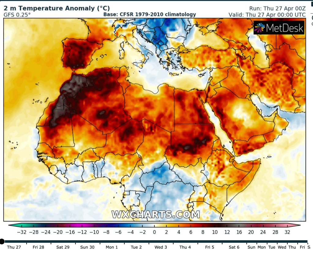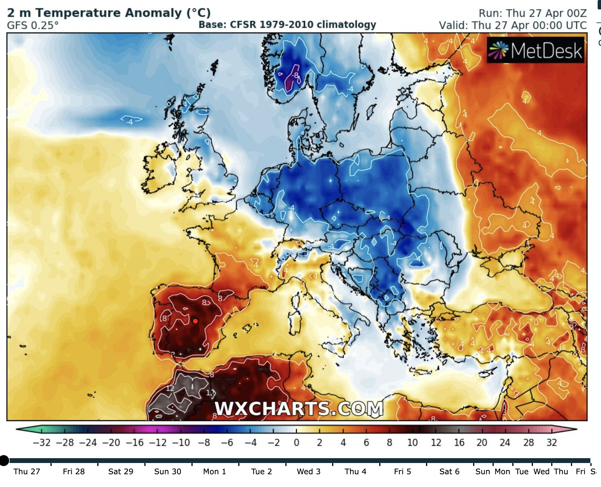 La gente del norte/centro de Europa pregunta: “¿Por qué hace tanto frío aquí en abril?”, mientras que Iberia ya está ardiendo.