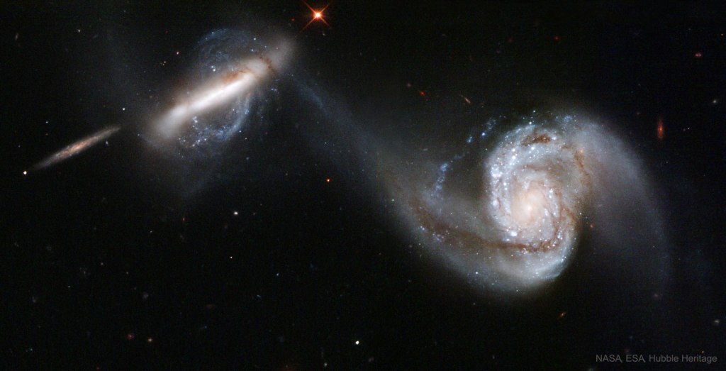 Geometric collections that shine light from hundreds of thousands of millions of stars, and supermassive dark objects which evolve and travel together in intergalactic space …