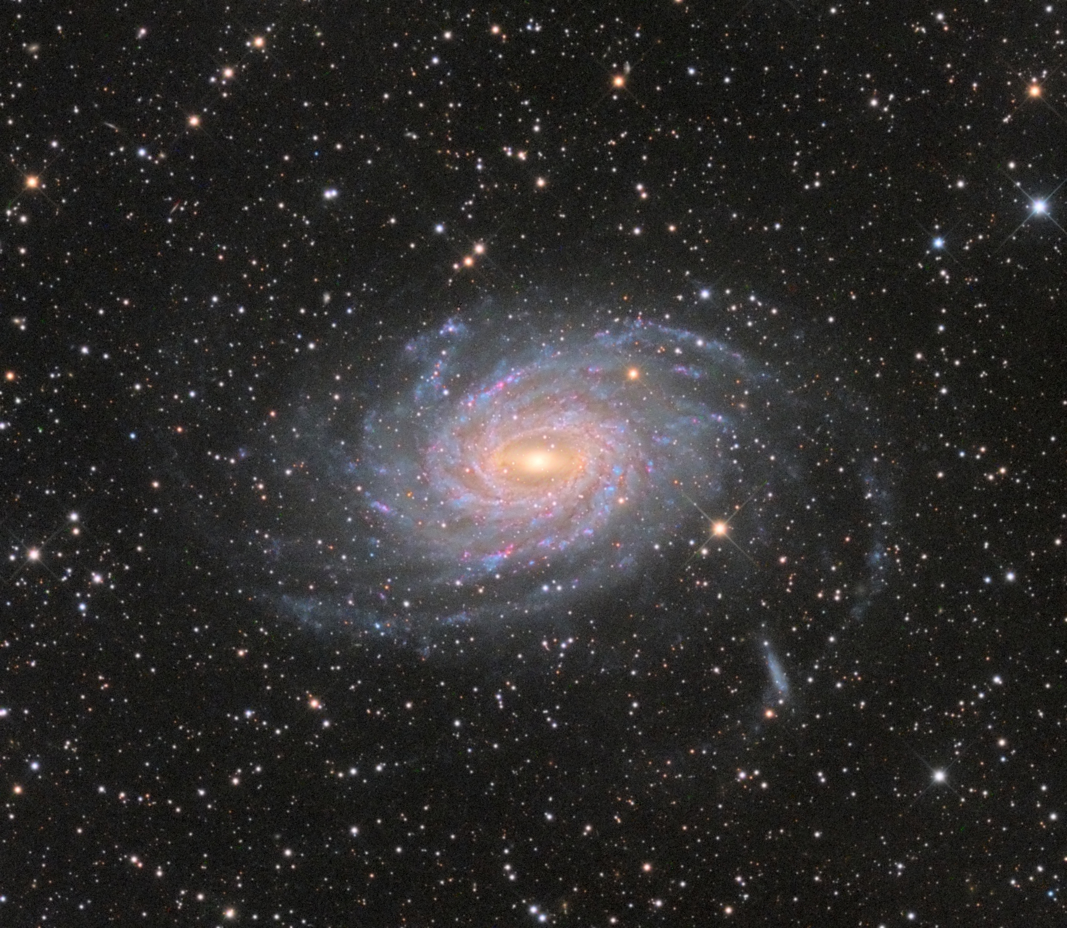 Andromeda Galaxy (M31), our closest neighbour. 2.5 million light years from Earth, about 220,000 light years wide.The spiral galaxy M33. 2.7 million light years from Earth, about 60,000 light years wide.Spiral galaxy IC 342 observed by the Hubble Space Telescope. About 10 million light years away, about 75,000 light years wide. Image Credit & Copyright: Arturas Medvedevas.The spiral galaxy M81 (NGC 3031). 12 million light years away, about 90,000 light years wide. Image Credit & Copyright: Paolo De Salvatore (Zenit Observatory).The spiral galaxy M83 observed by the Hubble Space Telescope. 15 million light years away, about 55,000 light years wide.The spiral galaxy M 106. 24 million light years away, about 135,000 light years wide. Image Credit: NASA, ESO , NAOJ, Giovanni Paglioli; Assembling and Processing: R. Colombari and R. Gendler.The spiral galaxy M63 (NGC 5055, or sunflower galaxy). 30 million light years away, about 100,000 light years wide. Image Credit & Copyright: Bernard Miller.The spiral galaxy NGC 6744. 30 million light years away in the southern constellation Pavo, it is about 175,000 light years wide.The spiral galaxy M96 (NGC 3368). 31 million light years from Earth, about 75,000 light years wide. Image credit: NASA, ESA, Hubble; processing & copyright: Leo ShatzThe spiral galaxy M95 (NGC 3351) observed by the Hubble Space Telescope and the European Southern Observatory. 33 million light years away, about 45,000 light years wide.The spiral galaxy M77 observed by the Hubble Space Telescope. 47 million light years away, about 170,000 light years wide.The barred spiral galaxy NGC 2442 observed by the Hubble Space Telescope and the European Southern Observatory. 50 million light years away, about 75,000 light years wide.The spiral galaxy M61 in the Virgo Cluster of galaxies, observed with the European Southern Observatory telescopes. About 50 million light years away, about 100,000 light years wide. Credit: ESO.The barred spiral galaxy NGC 1672 observed by the Hubble Space Telescope. 55 million light years away, about 65,000 light years wide.The spiral galaxy NGC 1232 observed with the European Southern Observatory telescopes. About 60 million light years away, about 200,000 light years wide.The barred spiral galaxy NGC 1300 observed by the Hubble Space Telescope. 70 million light years away, more than 100,000 light years wide.Spiral galaxy NGC 6814 observed by the Hubble Space Telescope. Active! 75 million light years away, about 85,000 light years wide.The spiral galaxy NGC 3147. Credits: NASA, ESA, Stefano Bianch (Università degli Studi Roma Tre University), A. Laor (Technion-Israel Institute of Technology), and M. Chiaberge (ESA, STScI, and JHU) 130 million light years from Earth, 140,000 light years wide.