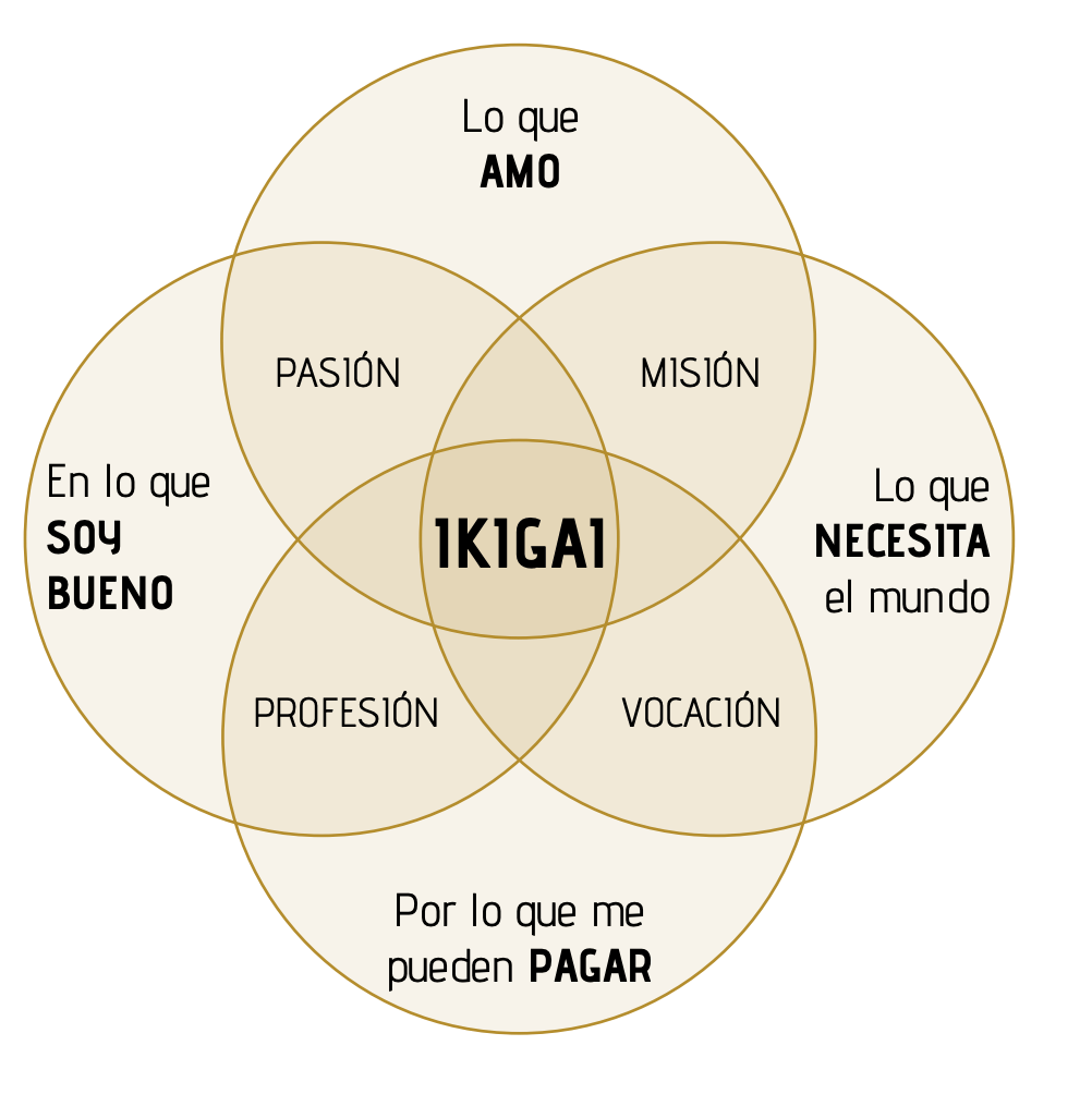 Ikigai es un concepto japonés hermoso e importantísimo que se refiere al sentido de la vida. Dice que el sentido de la vida se encuentra en la intersección de cuatro cosas: