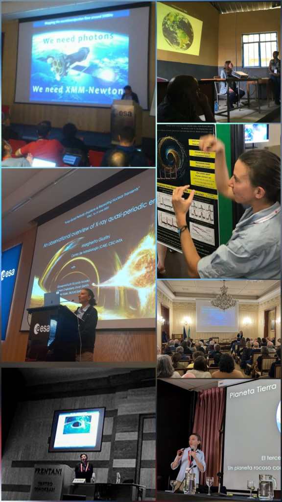 - “A review of X-ray quasi-periodic eruptions in galactic nuclei” — invited talk at the COSPAR 45th Scientific Assembly, Research in Astrophysics from Space E 1.8 “Solving the accretion/ejection puzzle in AGN: synergies and clashes in the central kiloparsec” (Busan, South Korea, July 2024)